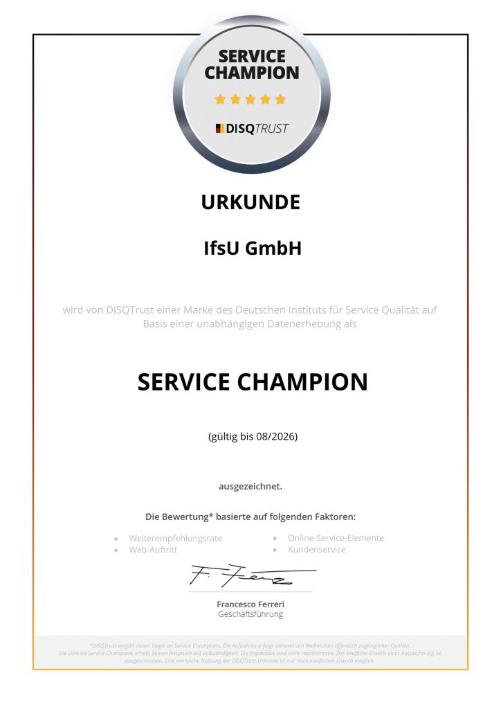 IfsU GmbH – Institut für strategische Unternehmens- und Persönlichkeitsentwicklung für herausragende Service-Qualität ausgezeichnet